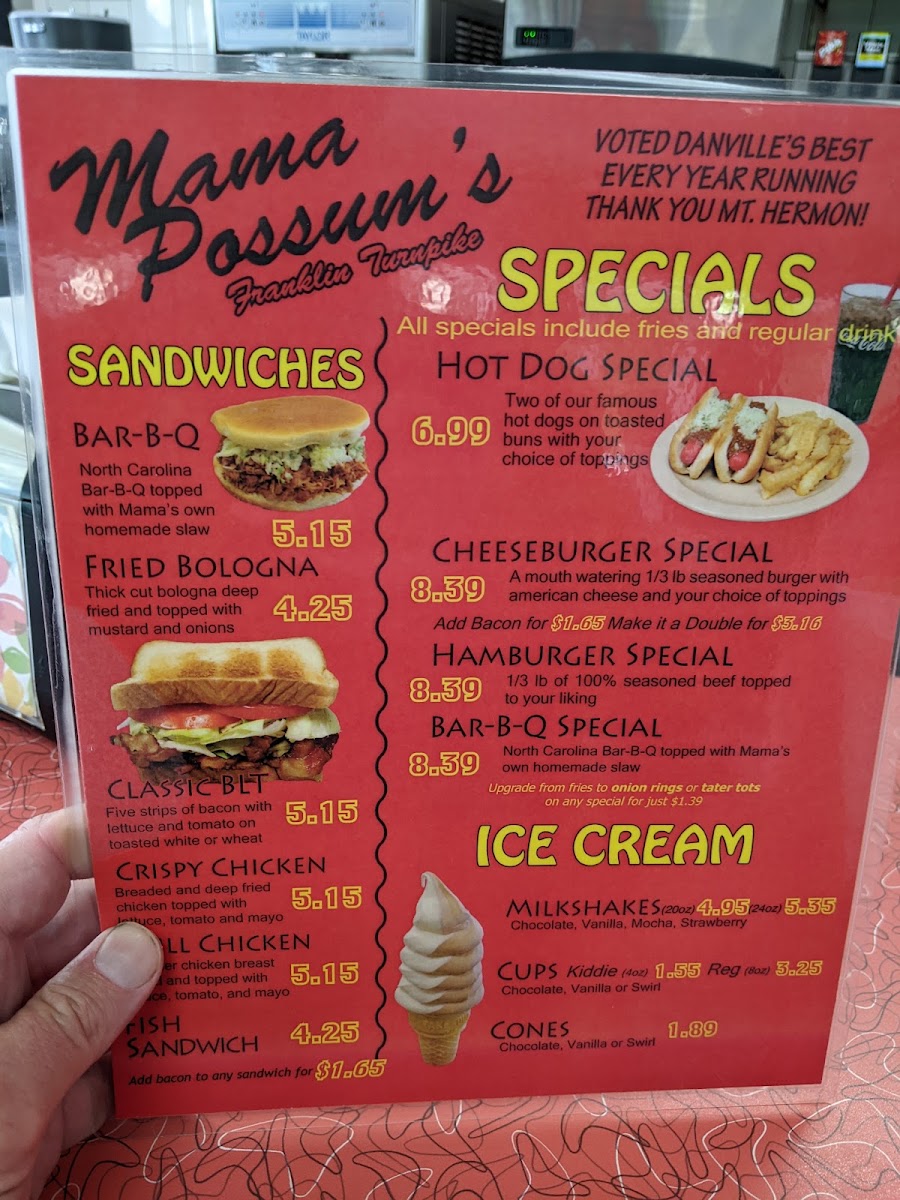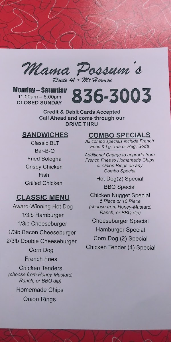 Welcome to Mama Possum's on Rt. 41 Mt. Hermon, a culinary gem nestled in Danville, VA. This charming eatery offers a delightful menu loaded with comfort food favorites that are perfect for any craving.